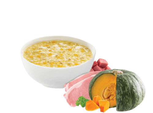 Nước hầm xương cá hồi, thịt heo, gạo, dầu thực vật, bí đỏ, đường tinh luyện, yến mạch, muối I-ốt, chất xơ hòa tan, DHA (Docosahexaenoic Acid), chiết xuất tự nhiên từ đạm thực vật, hành, tỏi, vitamin nhóm B (B1, B6, B9).